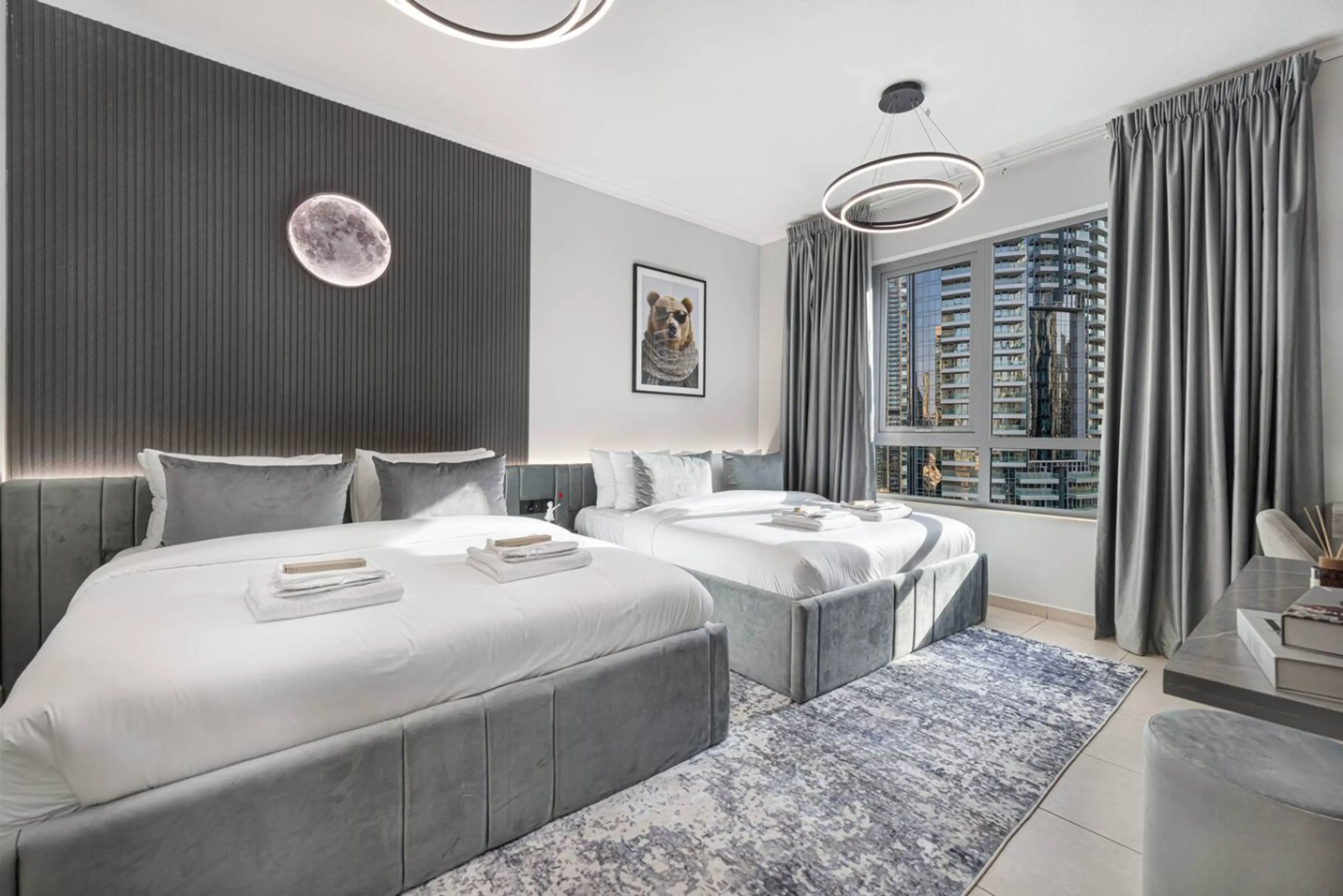 Wake up to breathtaking Burj Khalifa and fountain views, unwind in elegant interiors, and enjoy world-class amenities — all just steps away from Dubai Mall and the city’s most iconic attractions. Perfect for families, business travelers, and groups, this spacious apartment combines home comfort with...