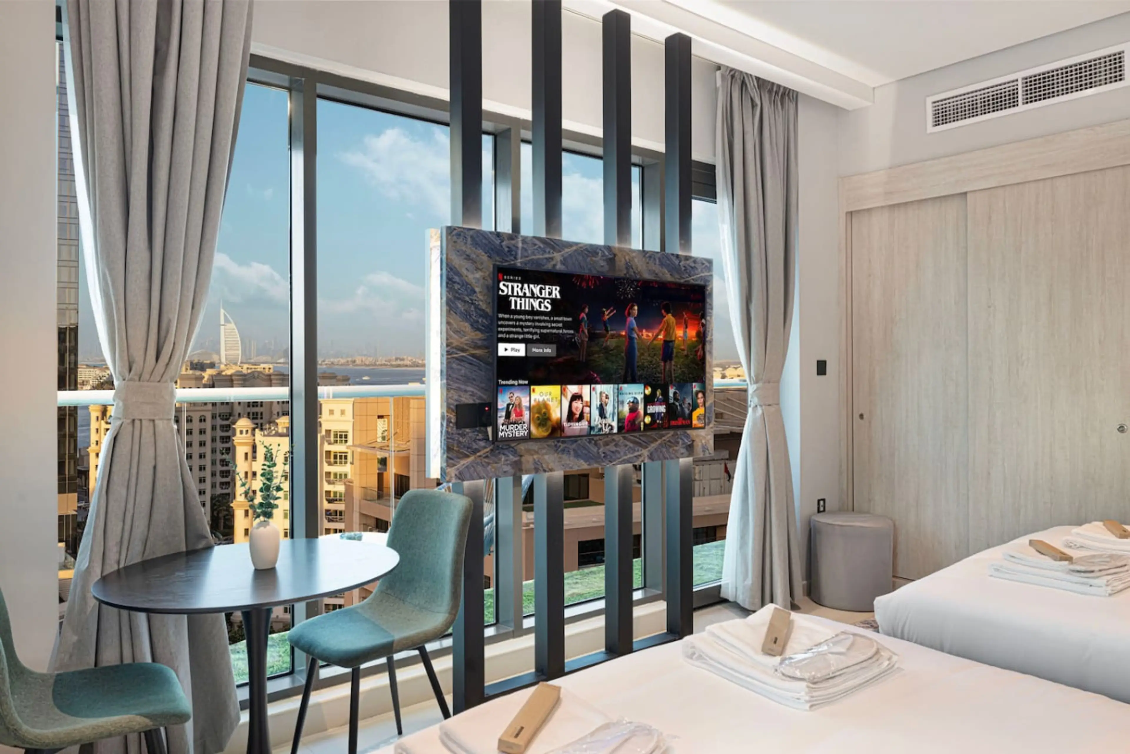 Welcome to our elegant studio in the prestigious Seven Palm Residences, set on the iconic Palm Jumeirah in Dubai. Combining luxury living with breathtaking views, this apartment is designed to offer you an unforgettable stay. ✨ Welcome to Your Elegant Studio on Palm Jumeirah ✨ Imagine waking up in...