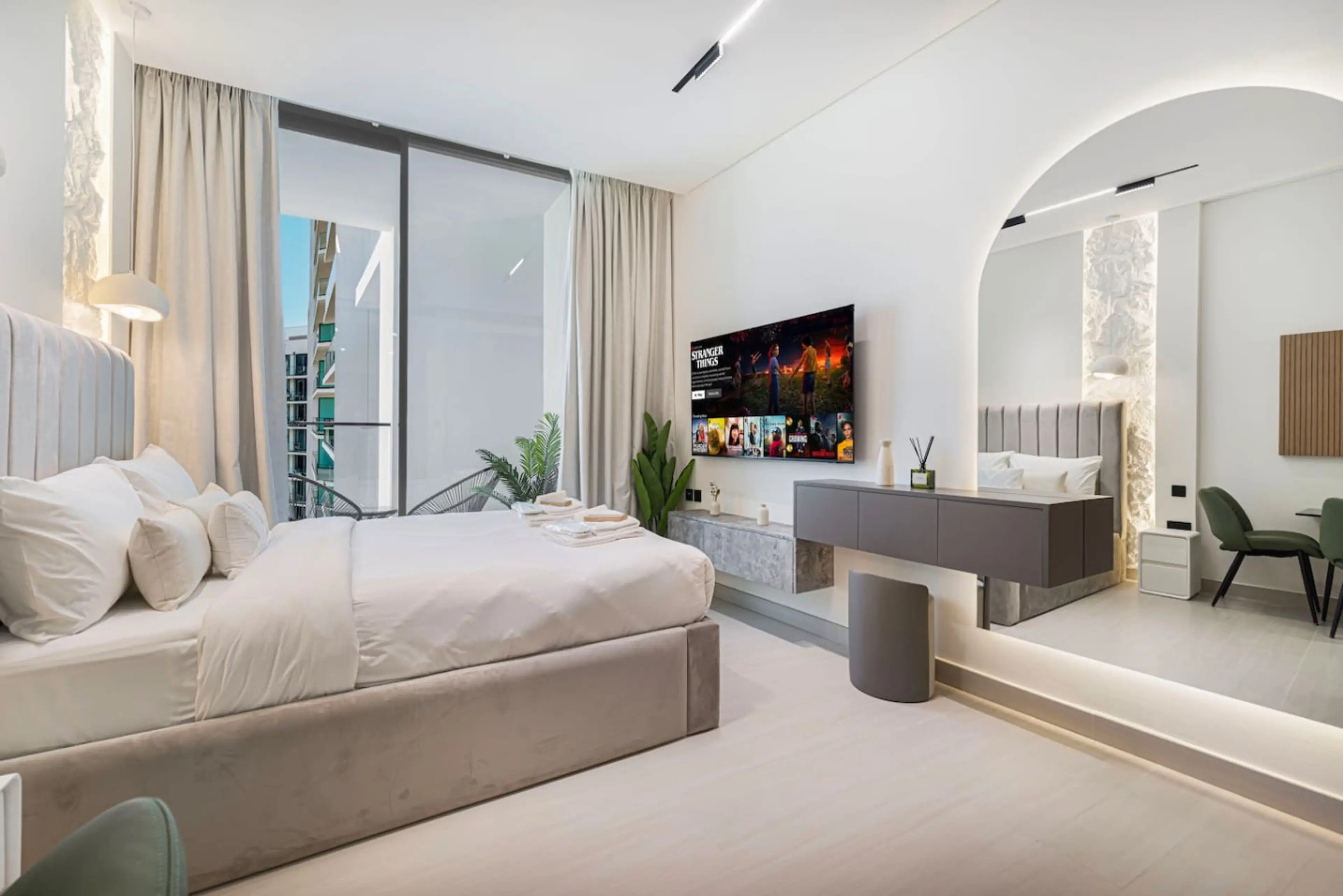 Welcome to your modern studio retreat in the heart of JVC, Dubai! This bright, fully furnished studio apartment blends modern design with cozy comfort—perfect for solo travelers, couples, or remote workers looking for a stylish and convenient Dubai stay. ✨ Welcome to your modern studio retreat in...